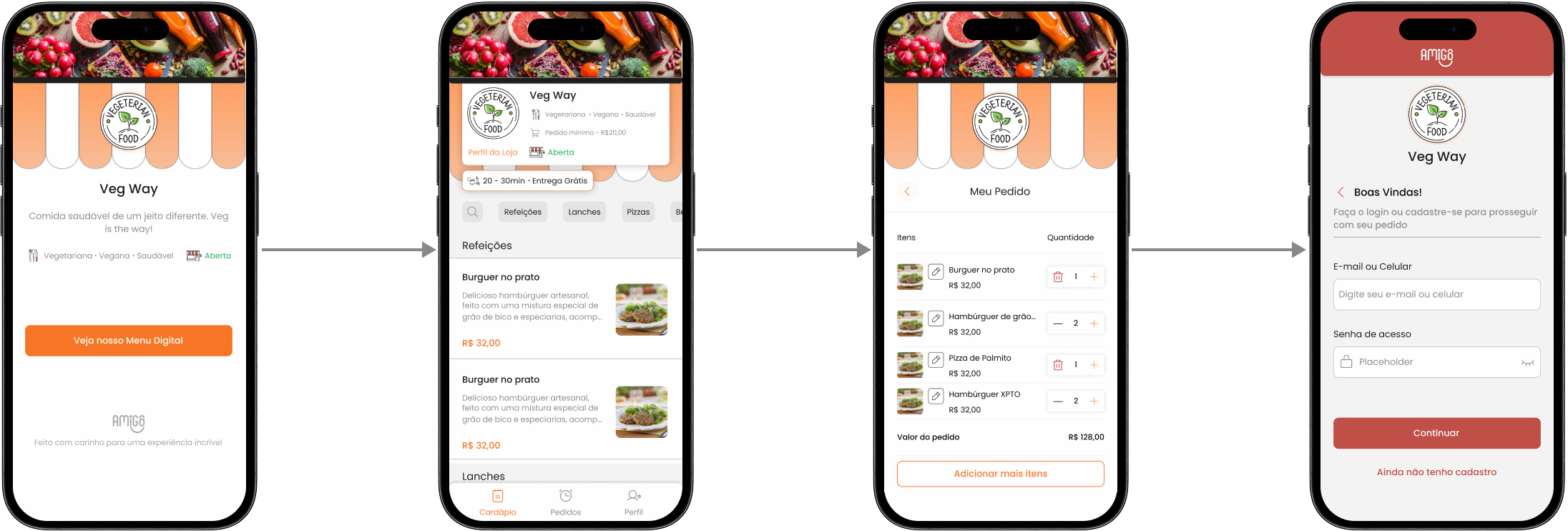 Para reduzir ao máximo os pontos de fricção na apresentação da loja ao cliente, decidimos deixar o usuário à vontade para navegar pelo cardápio desde o primeiro acesso: