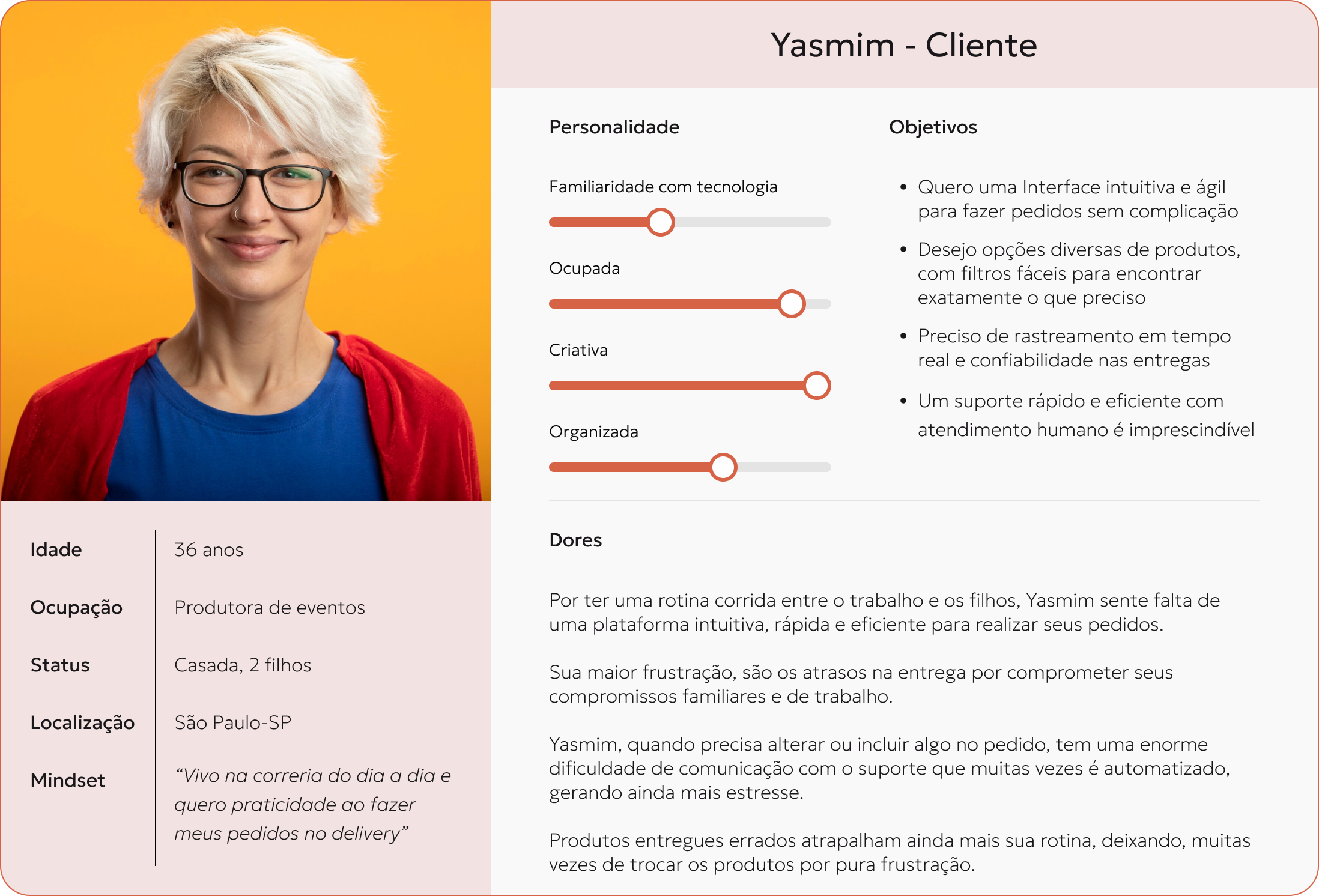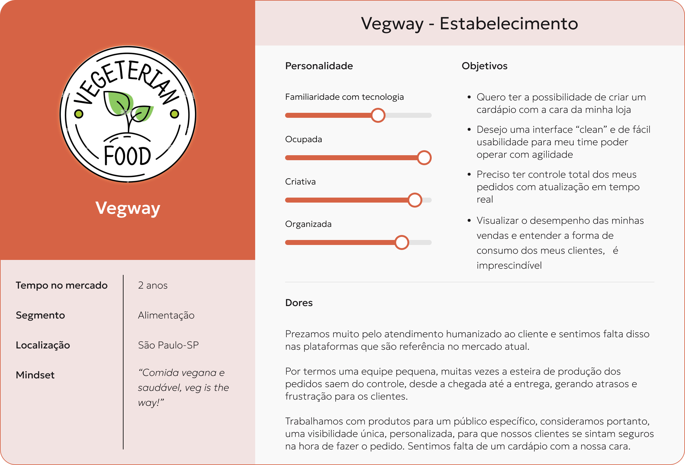 Usando insights das minhas pesquisas e utilização das plataformas existentes no mercado, criei duas personas que refletiam minha base de usuários alvo de ambas as pontas, a loja e o cliente.