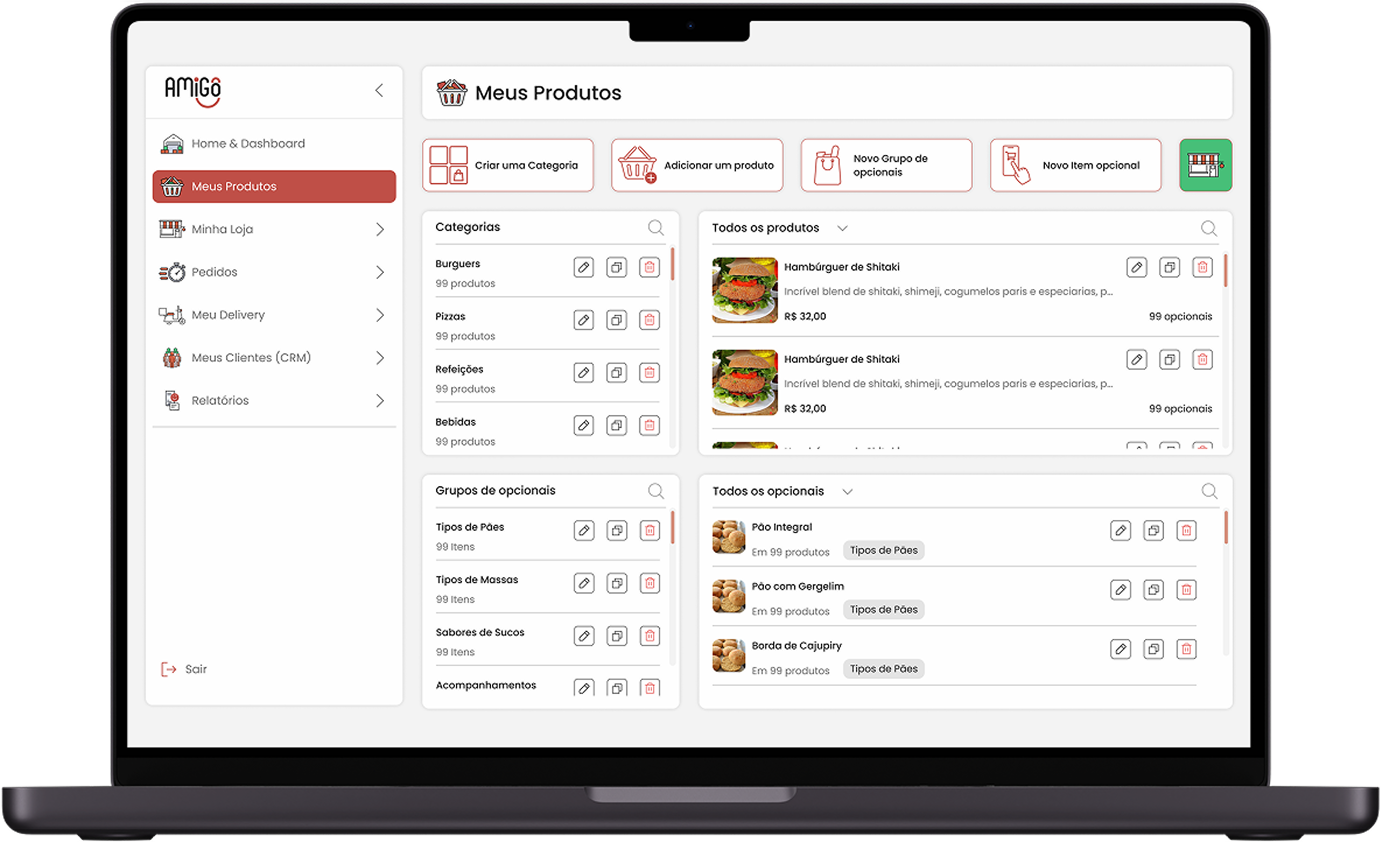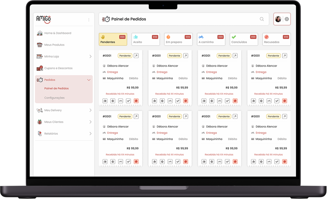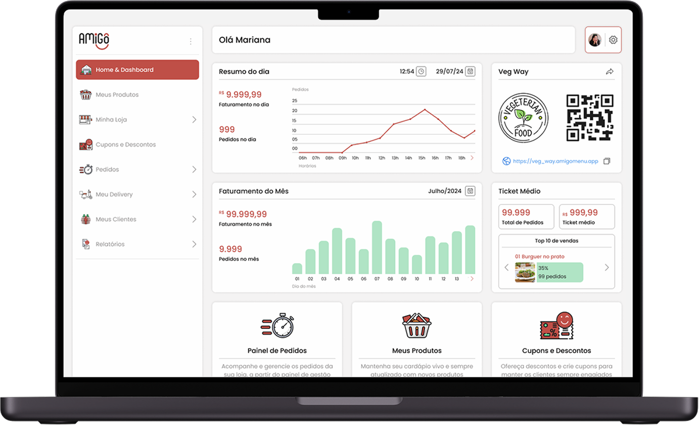 O gestor do estabelecimento poderá visualizar a performance das vendas, sobretudo os produtos mais pedidos através de um painel claro e de fácil navegação.