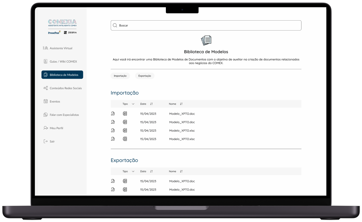 Para agilizar os processos, criamos uma biblioteca com os modelos de documentação relacionados aos negócios.
